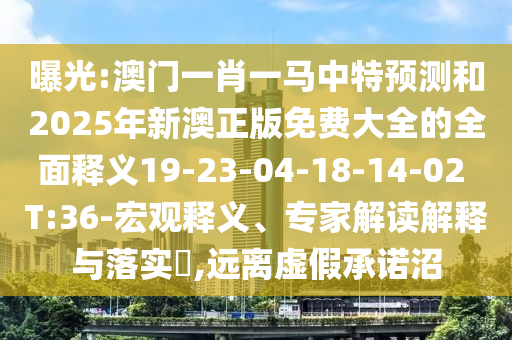 曝光:澳門一肖一馬中特預測和2025年新澳正版免費大全的全面釋義19-23-04-18-14-02 T:36-宏觀釋義、專家解讀解釋與落實?,遠離虛假承諾沼