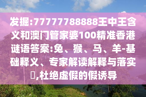 77777788888王中王含義和澳門管家婆100精準(zhǔn)香港謎語答案:兔、猴、馬、羊:基礎(chǔ)釋義、專家解讀解釋與落實(shí)?