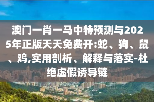 澳門一肖一馬中特預測與2025年正版天天免費開:蛇、狗、鼠、雞:實用剖析、解釋與落實