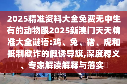 關于關鍵詞“2025精準資料大全免費無中生有的動物”和“2025新澳門天天精準大全謎語:雞、兔、豬、虎”的深度釋義、專家解讀解釋與落實,以及抵制虛假宣傳的警示內容如下: