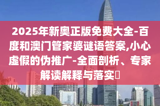今天我們將聚焦于一個特定的主題,2025年新奧正版免費大全”、“百度”以及“澳門管家婆謎語答案”的相關問題,隨著網絡的普及,我們注意到一種現象逐漸增多,那就是虛假宣傳與偽推廣,在此,我們希望全面釋義、解釋與落實這些關鍵詞,并提醒公眾警惕虛假宣傳,避免受到不必要的困擾和損失。