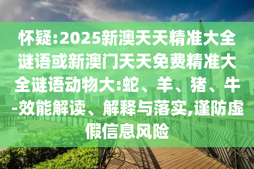 我們需要理解關鍵詞的核心內容,這里的關鍵詞包括“懷疑”,“2025新澳天天精準大全謎語”或“新澳門天天免費精準大全謎語”,“動物大:蛇、羊、豬、牛”,以及“謹防虛假信息風險”,這些關鍵詞涉及到的是關于某種預測、猜測或者可能是某種游戲、游戲相關的謎語,同時涉及到特定的動物和防范虛假信息的重要性。