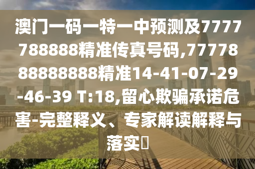 澳門一碼一特一中預(yù)測(cè)及7777788888精準(zhǔn)傳真號(hào)碼,7777888888888精準(zhǔn)14-41-07-29-46-39 T:18:完整釋義、專家解讀解釋與落實(shí)?