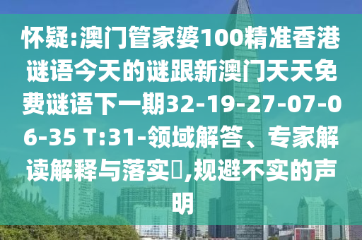 懷疑:澳門管家婆100精準(zhǔn)香港謎語(yǔ)今天的謎跟新澳門天天免費(fèi)謎語(yǔ)下一期32-19-27-07-06-35 T:31-領(lǐng)域解答、專家解讀解釋與落實(shí)?,規(guī)避不實(shí)的聲明