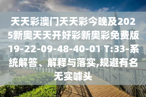 天天彩澳門(mén)天天彩今晚及2025新奧天天開(kāi)好彩新奧彩免費(fèi)版19-22-09-48-40-01 T:33的系統(tǒng)解答、解釋與落實(shí)