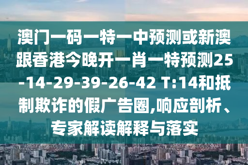 澳門一碼一特一中預測或新澳跟香港今晚開一肖一特預測25-14-29-39-26-42 T:14和抵制欺詐的假廣告圈,響應剖析、專家解讀解釋與落實