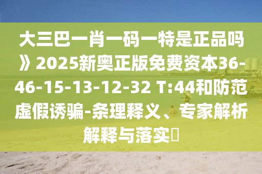大三巴一肖一碼一特是正品嗎》2025新奧正版免費資本36-46-15-13-12-32 T:44:條理釋義、專家解析解釋與落實?
