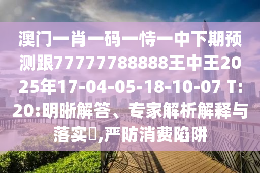 澳門一肖一碼一恃一中下期預測跟77777788888王中王2025年17-04-05-18-10-07 T:20:明晰解答、專家解析解釋與落實?,嚴防消費陷阱