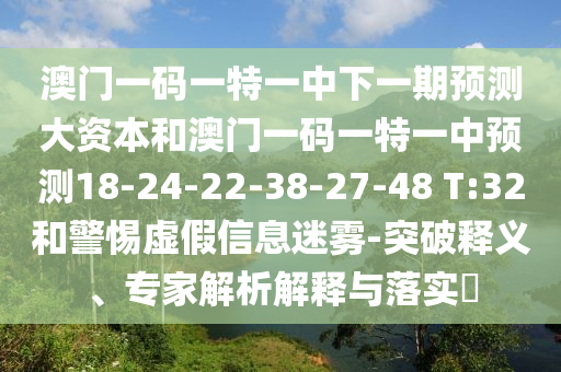 澳門一碼一特一中下一期預測大資本和澳門一碼一特一中預測18-24-22-38-27-48 T:32和警惕虛假信息迷霧-突破釋義、專家解析解釋與落實?