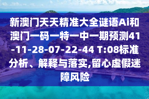 新澳門天天精準大全謎語Ai和澳門一碼一特一中一期預測41-11-28-07-22-44 T:08標準分析、解釋與落實,留心虛假迷障風險
