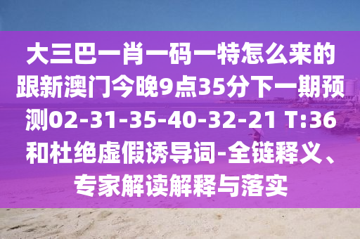 大三巴一肖一碼一特怎么來的跟新澳門今晚9點35分下一期預測02-31-35-40-32-21 T:36和杜絕虛假誘導詞-全鏈釋義、專家解讀解釋與落實