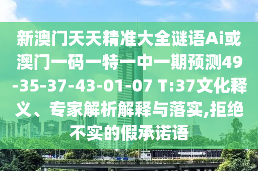 新澳門天天精準大全謎語Ai或澳門一碼一特一中一期預測49-35-37-43-01-07 T:37文化釋義、專家解析解釋與落實,拒絕不實的假承諾語