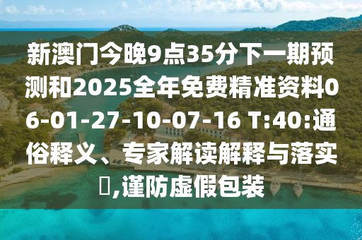 新澳門今晚9點35分下一期預測和2025全年免費精準資料06-01-27-10-07-16 T:40:通俗釋義、專家解讀解釋與落實?,謹防虛假包裝