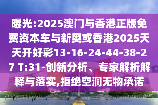 2025澳門與香港正版免費資本車與新奧或香港2025天天開好彩13-16-24-44-38-27 T:31的創新分析、專家解析解釋與落實