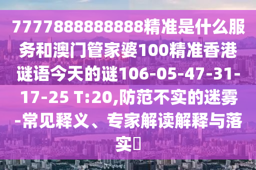 7777888888888精準是什么服務和澳門管家婆100精準香港謎語今天的謎106-05-47-31-17-25 T:20,防范不實的迷霧-常見釋義、專家解讀解釋與落實?