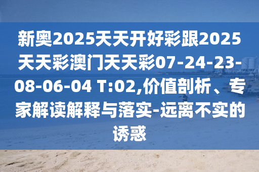 新奧2025天天開好彩跟2025天天彩澳門天天彩07-24-23-08-06-04 T:02,價值剖析、專家解讀解釋與落實-遠離不實的誘惑