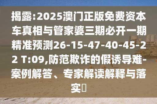 揭露:2025澳門正版免費資本車真相與管家婆三期必開一期精準預測26-15-47-40-45-22 T:09,防范欺詐的假誘導難-案例解答、專家解讀解釋與落實?