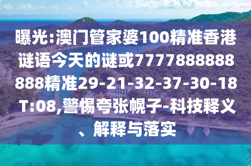 曝光:澳門管家婆100精準香港謎語今天的謎或7777888888888精準29-21-32-37-30-18 T:08,警惕夸張幌子-科技釋義、解釋與落實