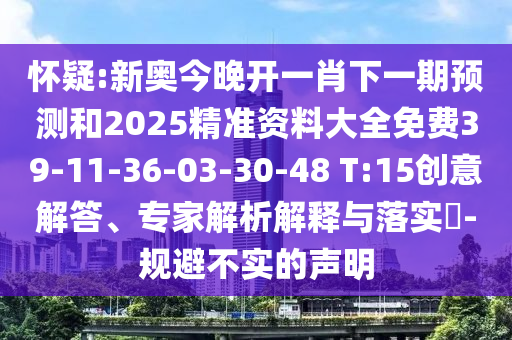懷疑:新奧今晚開一肖下一期預測和2025精準資料大全免費39-11-36-03-30-48 T:15創(chuàng)意解答、專家解析解釋與落實?-規(guī)避不實的聲明