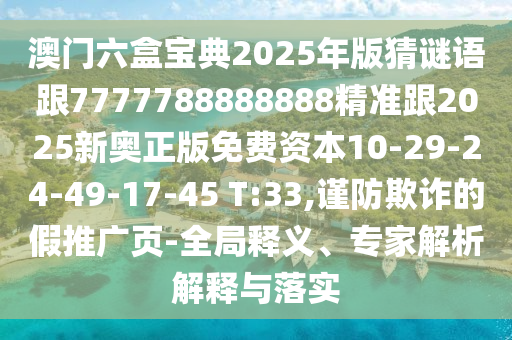 澳門六盒寶典2025年版猜謎語跟7777788888888精準跟2025新奧正版免費資本10-29-24-49-17-45 T:33,謹防欺詐的假推廣頁-全局釋義、專家解析解釋與落實
