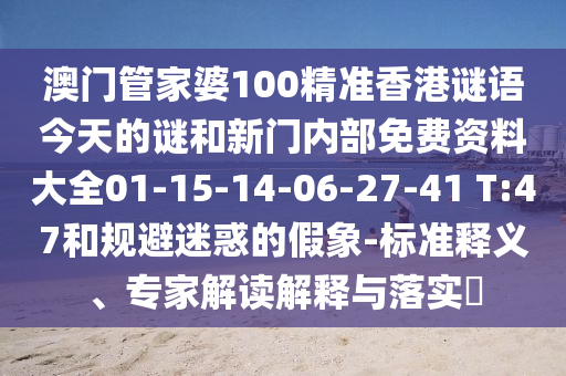 澳門管家婆100精準香港謎語今天的謎和新門內部免費資料大全01-15-14-06-27-41 T:47和規避迷惑的假象-標準釋義、專家解讀解釋與落實?