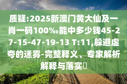 質疑:2025新澳門黃大仙及一肖一碼100‰能中多少錢45-27-15-47-19-13 T:11,躲避虛夸的迷霧-完整釋義、專家解析解釋與落實?