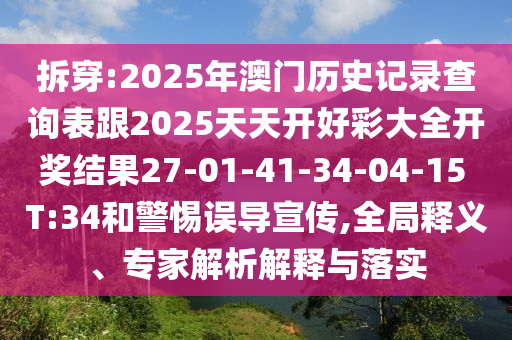 拆穿:2025年澳門歷史記錄查詢表跟2025天天開好彩大全開獎結果27-01-41-34-04-15 T:34和警惕誤導宣傳,全局釋義、專家解析解釋與落實