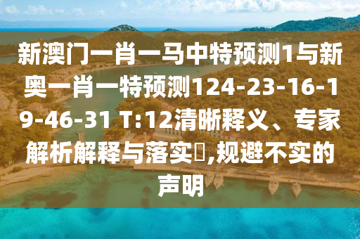 新澳門一肖一馬中特預測1與新奧一肖一特預測124-23-16-19-46-31 T:12:清晰釋義、專家解析解釋與落實?