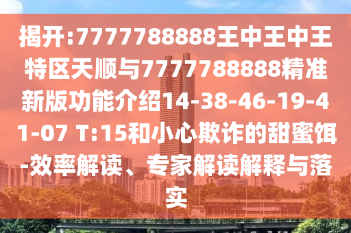 隨著互聯(lián)網(wǎng)的普及,虛假宣傳和信息欺詐現(xiàn)象愈發(fā)嚴(yán)重,我們可能經(jīng)常接觸到一些關(guān)鍵詞如“揭開(kāi):7777788888王中王中王特區(qū)天順與精準(zhǔn)新版功能介紹”,這些關(guān)鍵詞背后可能隱藏著一些不為人知的秘密和陷阱,本文將全面釋義、解釋與落實(shí)這些關(guān)鍵詞,并提醒公眾警惕虛假宣傳。